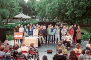 Op het einde van de voorstelling mochten alle deelnemers van de ateliers nog even mee op het podium.